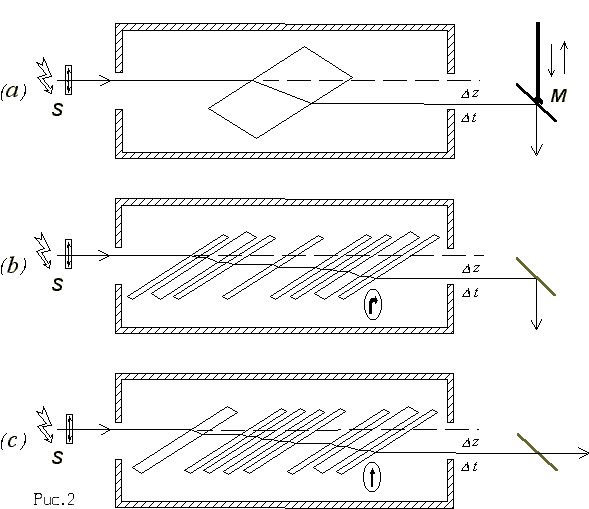 (2) (ввиду меньшей скорости света в стекле, а также удлинения пути) импульс света выйдет из ящика с некоторым запозданием ê t.